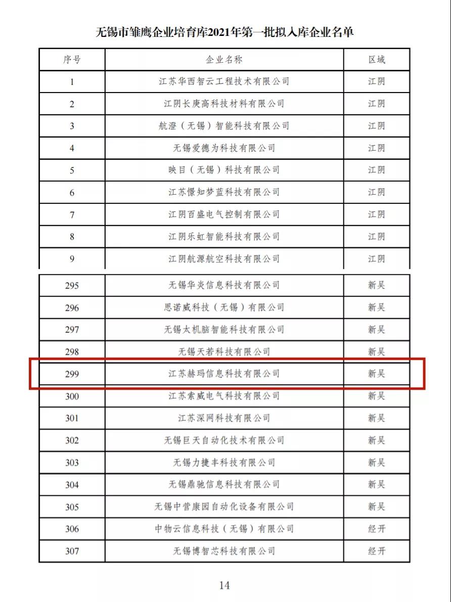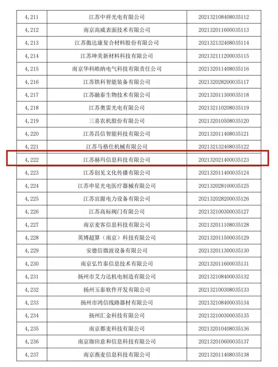 熱烈祝賀江蘇赫瑪信息科技有限公司入選2021年“無錫市雛鷹企業(yè)”、“江蘇省民營科技企業(yè)”、“江蘇省科技型中小企業(yè)”。