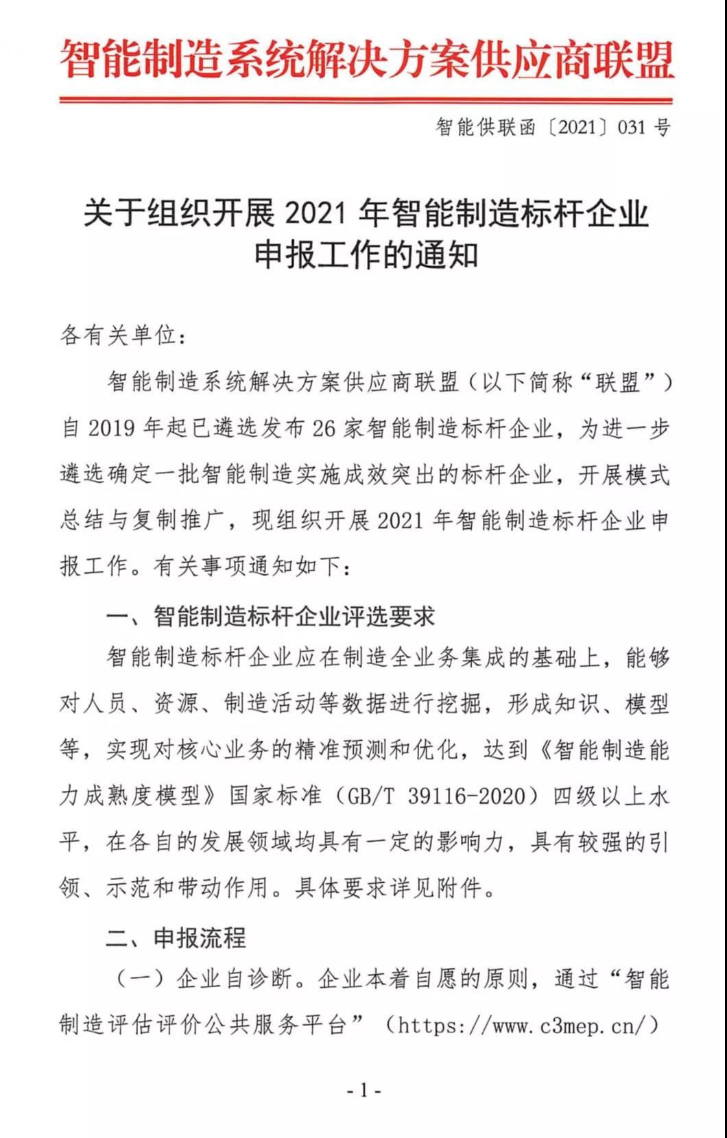 通知 | 2021年智能制造標桿企業(yè)申報開始啦!