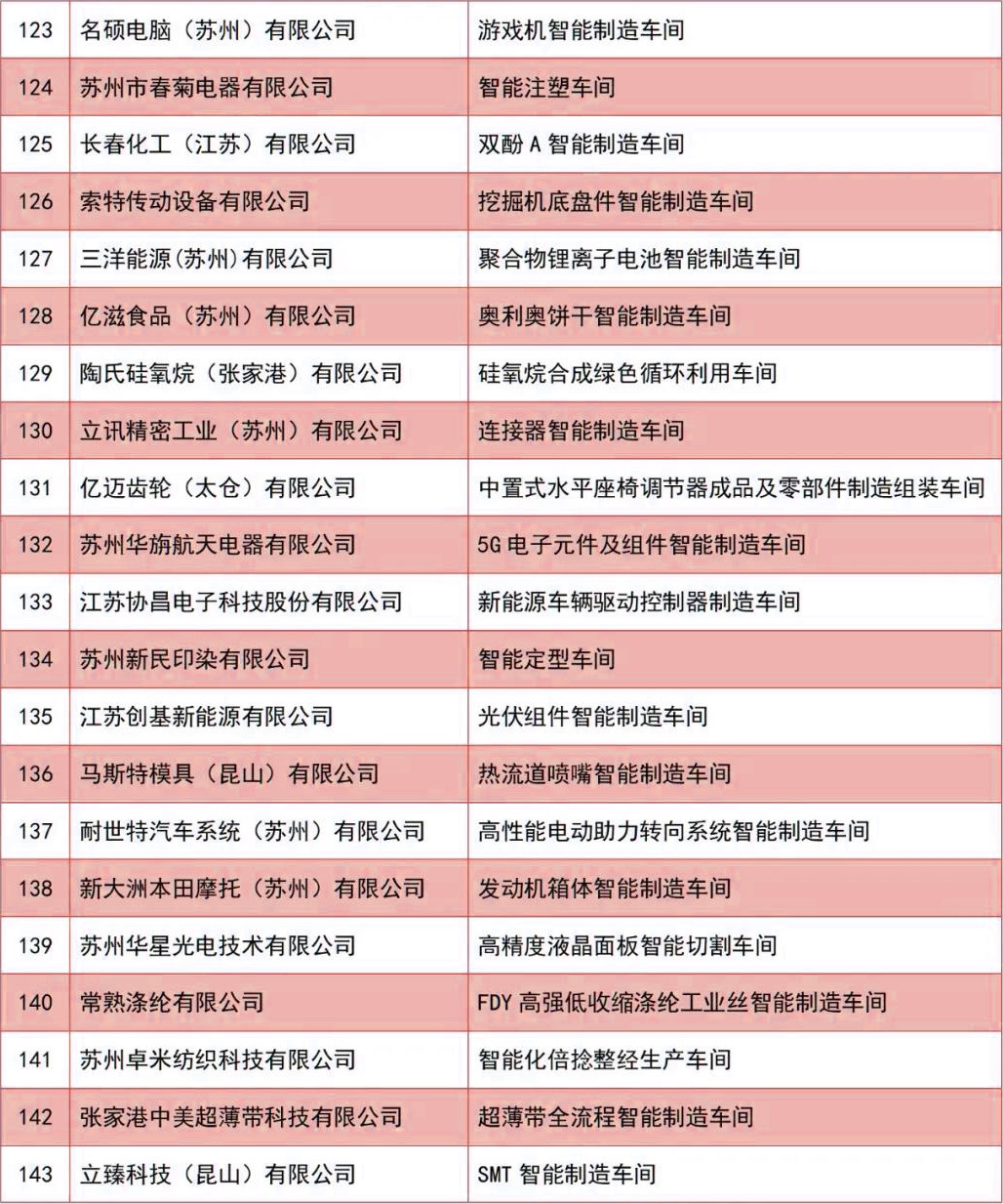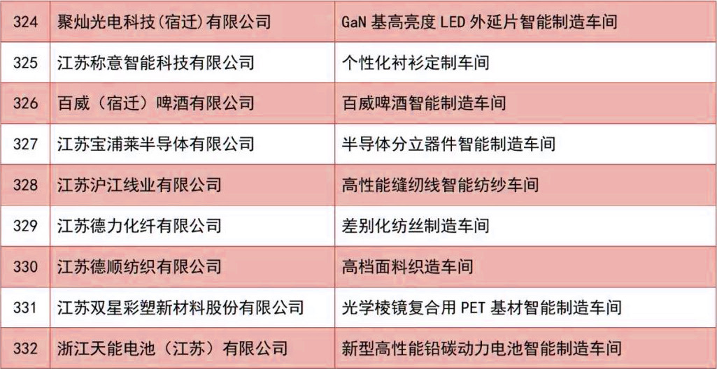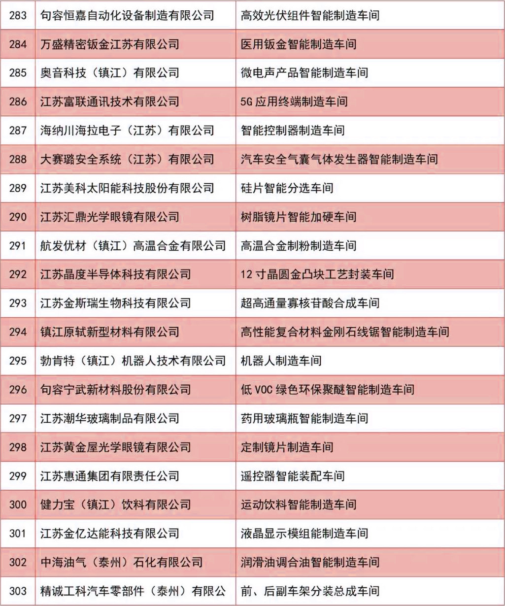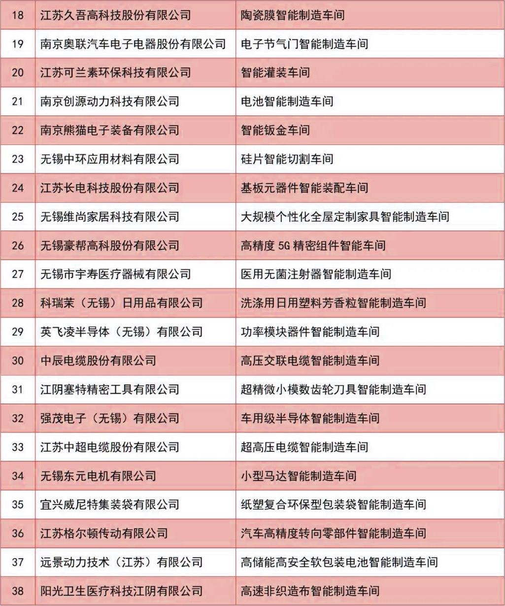 2021年江蘇省智能制造示范車間擬授牌名單公示