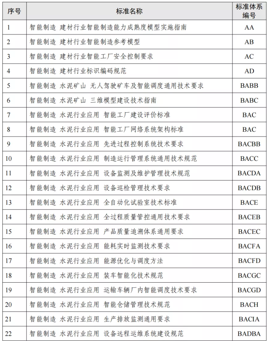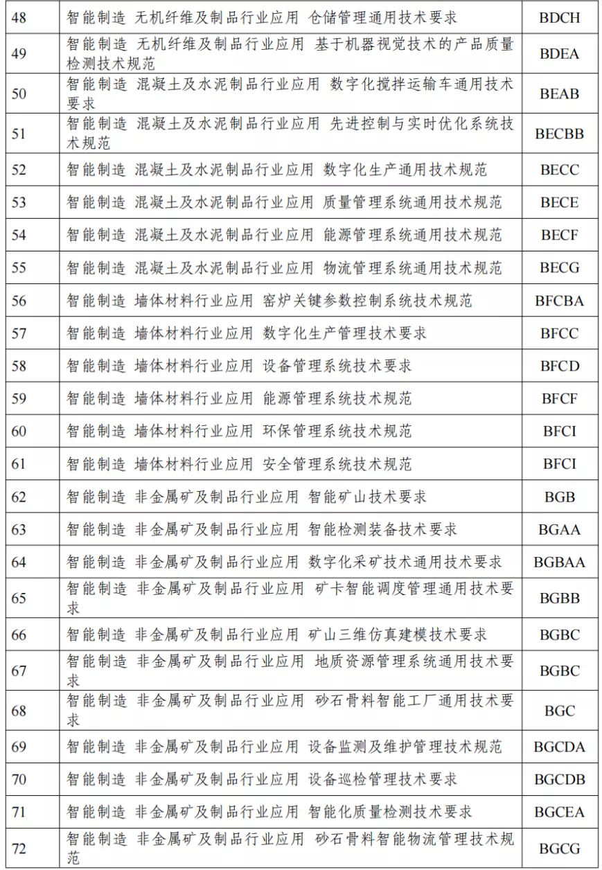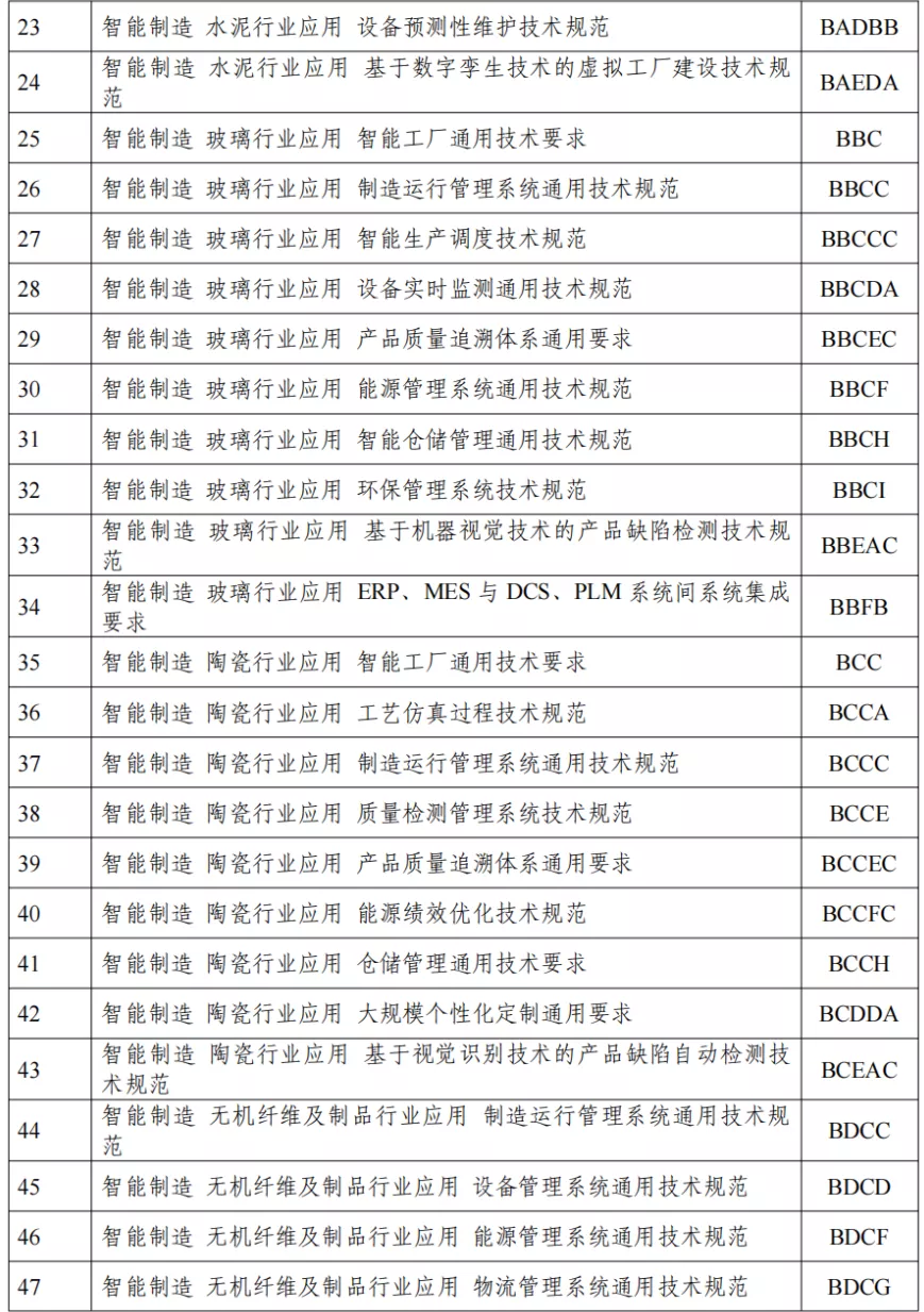 建材行業(yè)智能制造標(biāo)準(zhǔn)擬制定清單