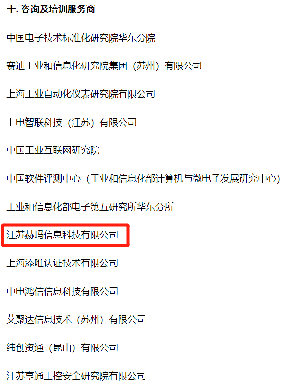 根據(jù)《關(guān)于征集鹽城市智能化改造和數(shù)字化轉(zhuǎn)型首批服務商的公告》,鹽城市工業(yè)和信息化局組織開展了鹽城市“智改數(shù)轉(zhuǎn)”服務商資源池征集和遴選,經(jīng)自主申報、第三方評審、綜合審核等程序,共有63家服務商通過評審,其中,江蘇赫瑪信息科技有限公司入選咨詢及培訓服務商。