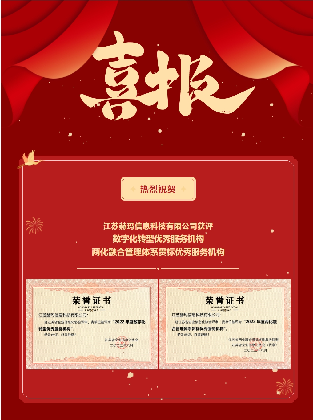 舉行了“2022年度兩化融合優(yōu)秀個人與先進(jìn)集體”頒獎典禮。赫瑪信息憑借其優(yōu)秀的專業(yè)服務(wù),取得行業(yè)專家們的認(rèn)可,從眾多服務(wù)機(jī)構(gòu)中脫穎而出,榮獲2022年“數(shù)字化轉(zhuǎn)型優(yōu)秀服務(wù)機(jī)構(gòu)”和“兩化融合管理體系貫標(biāo)優(yōu)秀服務(wù)機(jī)構(gòu)”兩個獎項。
