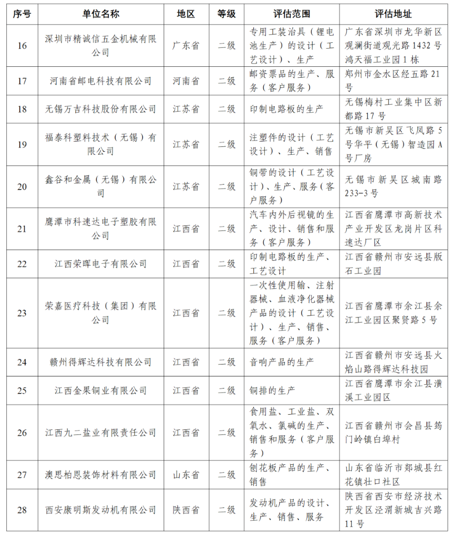 關(guān)于通過CMMM評估專家復(fù)核的企業(yè)名單公示