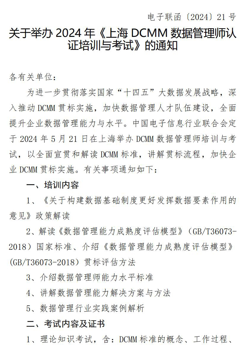 DCMM數(shù)據(jù)管理師(Certified DCMM Professional簡稱CDP)是中國電子信息行業(yè)聯(lián)合會、工業(yè)和信息化部教育與考試中心聯(lián)合推出的數(shù)據(jù)管理人員認(rèn)證體系,是以《大數(shù)據(jù)工程技術(shù)人員》國家職業(yè)技術(shù)技能標(biāo)準(zhǔn)為指引,以《數(shù)據(jù)管理能力成熟度評估模型》(GB/T36073-2018 簡稱DCMM)國家標(biāo)準(zhǔn)為核心構(gòu)建的具有中國特色的數(shù)據(jù)管理人員培訓(xùn)認(rèn)證體系。