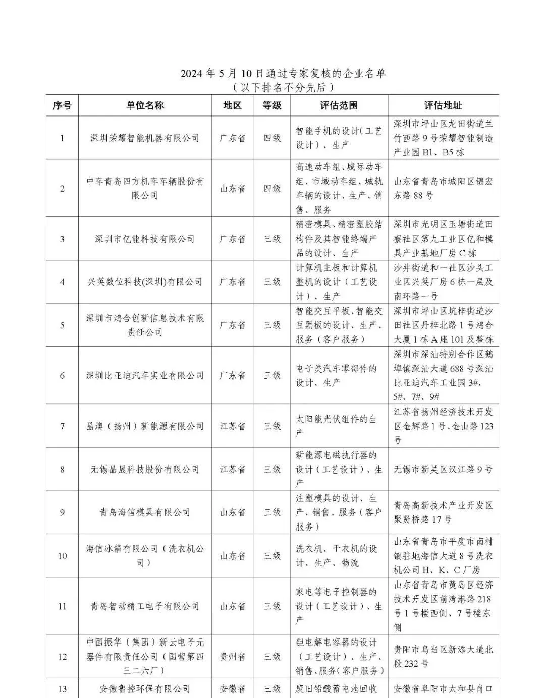 附件:2024年5月10日通過(guò)專(zhuān)家復(fù)核的企業(yè)名單