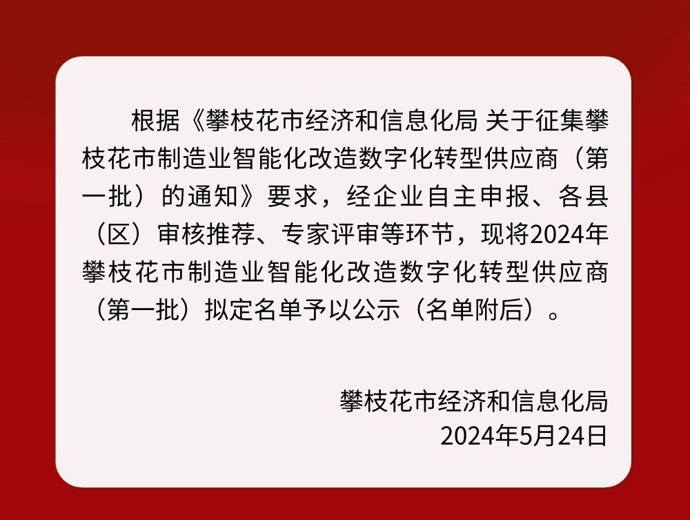 喜報(bào) | 赫瑪信息順利通過攀枝花市制造業(yè)智能化改造數(shù)字化轉(zhuǎn)型供應(yīng)商審核
