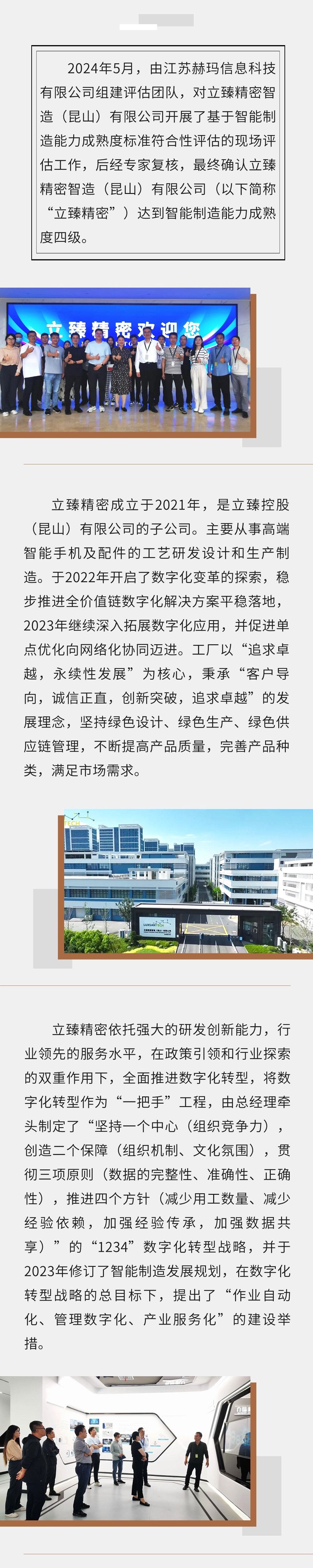 立臻精密智造(昆山)有限公司通過(guò)智能制造能力成熟度(CMMM)四級(jí)評(píng)估