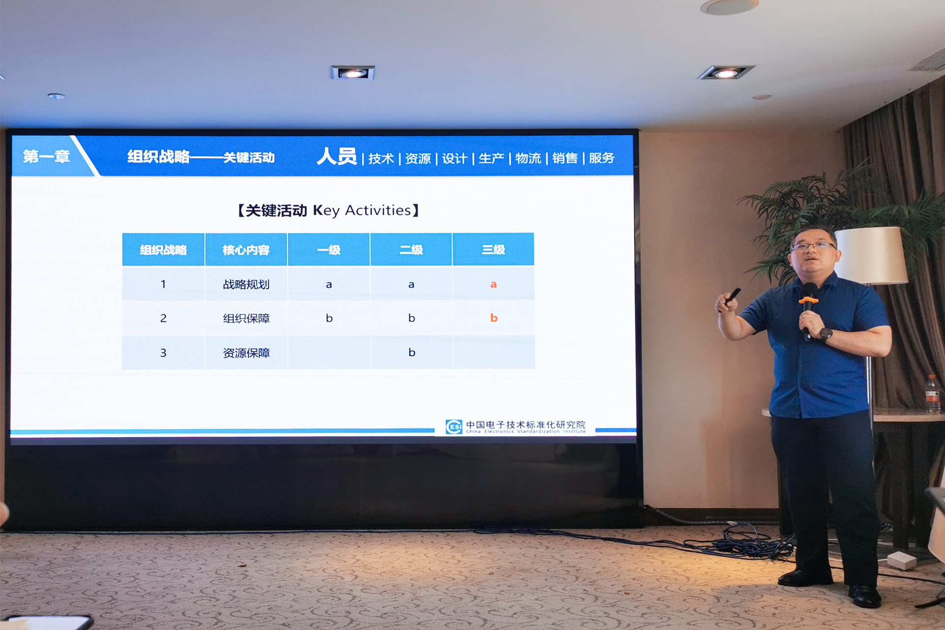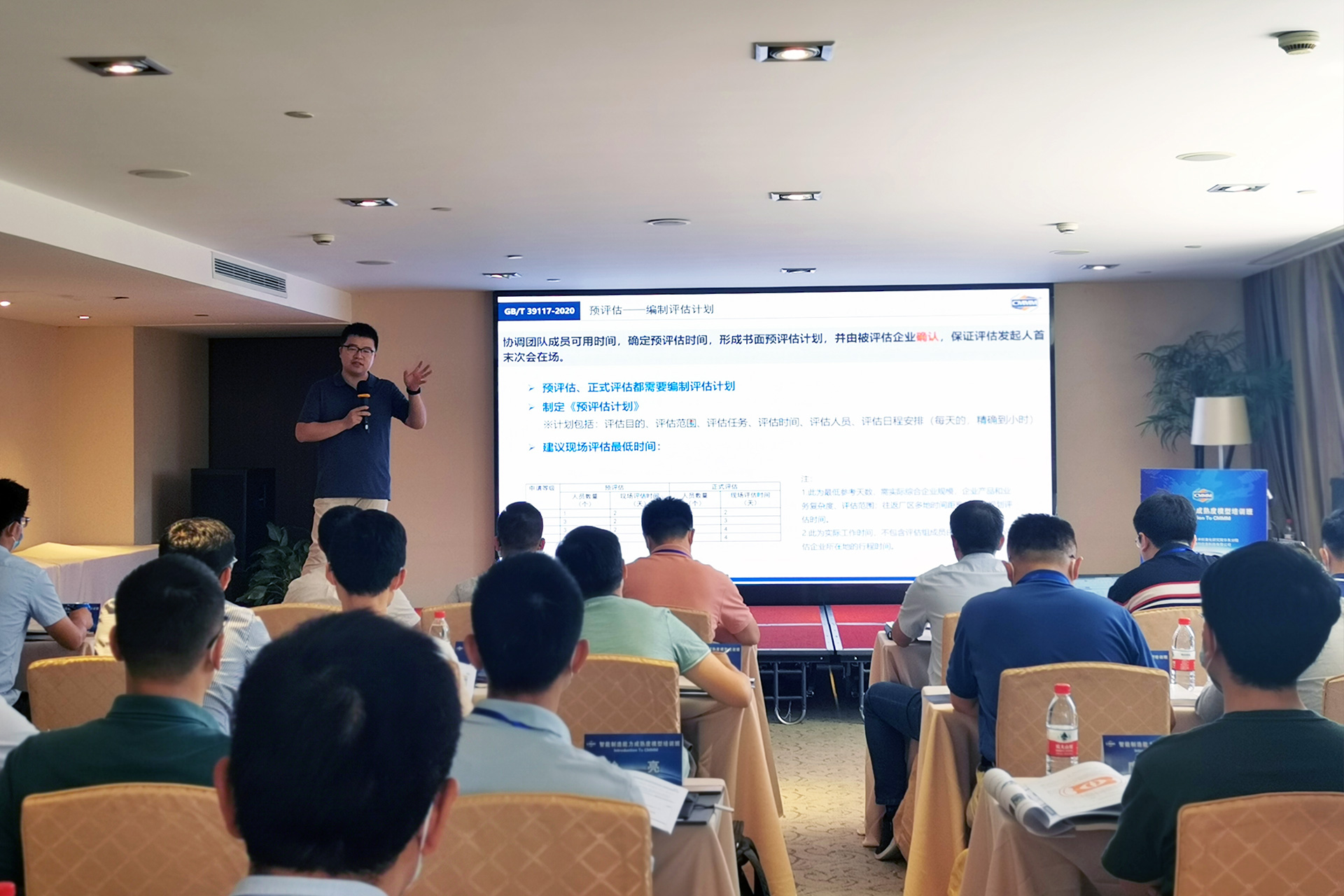 ? ? ?培訓(xùn)開始,由中國電子技術(shù)標(biāo)準(zhǔn)化研究院華東分院副主任葉宣辰對智能制造能力成熟度模型做了整體介紹,面向國家智能制造重大戰(zhàn)略政策及建設(shè)導(dǎo)向,對智能制造能力成熟度模型的5個等級和評估方做詳細(xì)介紹,為學(xué)員分享了標(biāo)準(zhǔn)的研制歷程、模型框架以及標(biāo)準(zhǔn)的應(yīng)用情況。同時,結(jié)合企業(yè)現(xiàn)場實(shí)際評估案例對評估方法、評估流程等內(nèi)容進(jìn)行了分享,介紹了智能制造評估評價公共服務(wù)平臺的使用方法和應(yīng)用情況。